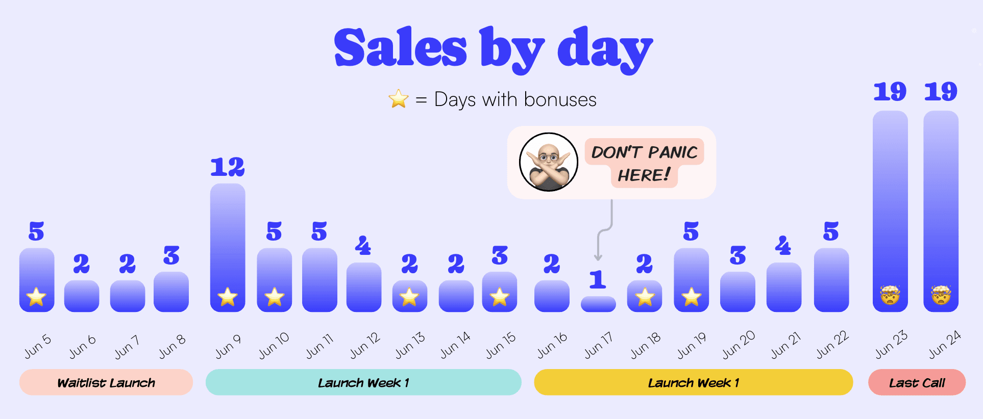 One highlight for me (Jason) during the launch was vibe coding (with Lovable) a sales tracker that I updated manually with each sale and shared it publicly: