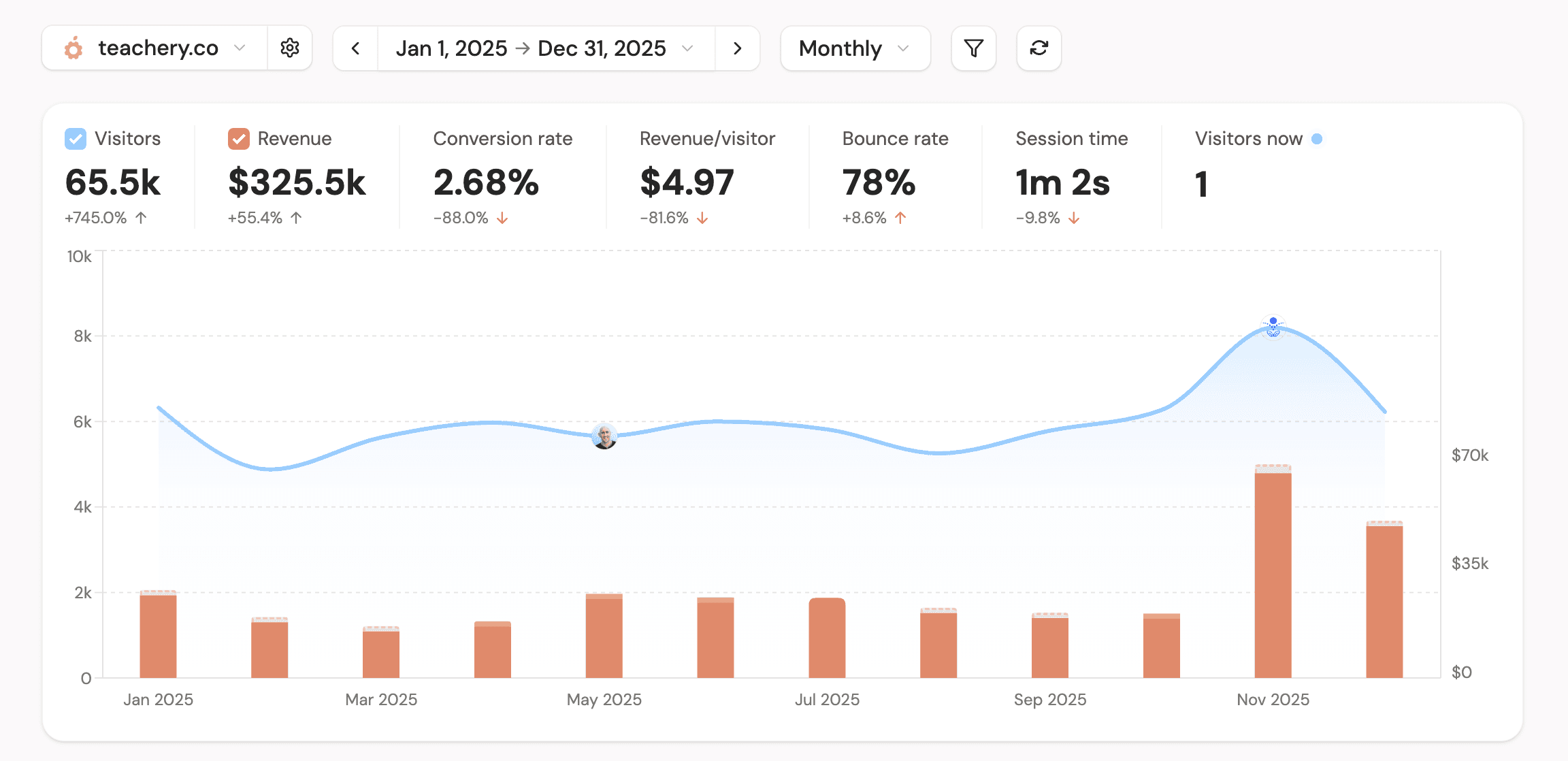 Teachery had its strongest year ever in 2025, bringing in $325,000 in revenue, the highest in its 13-year history.