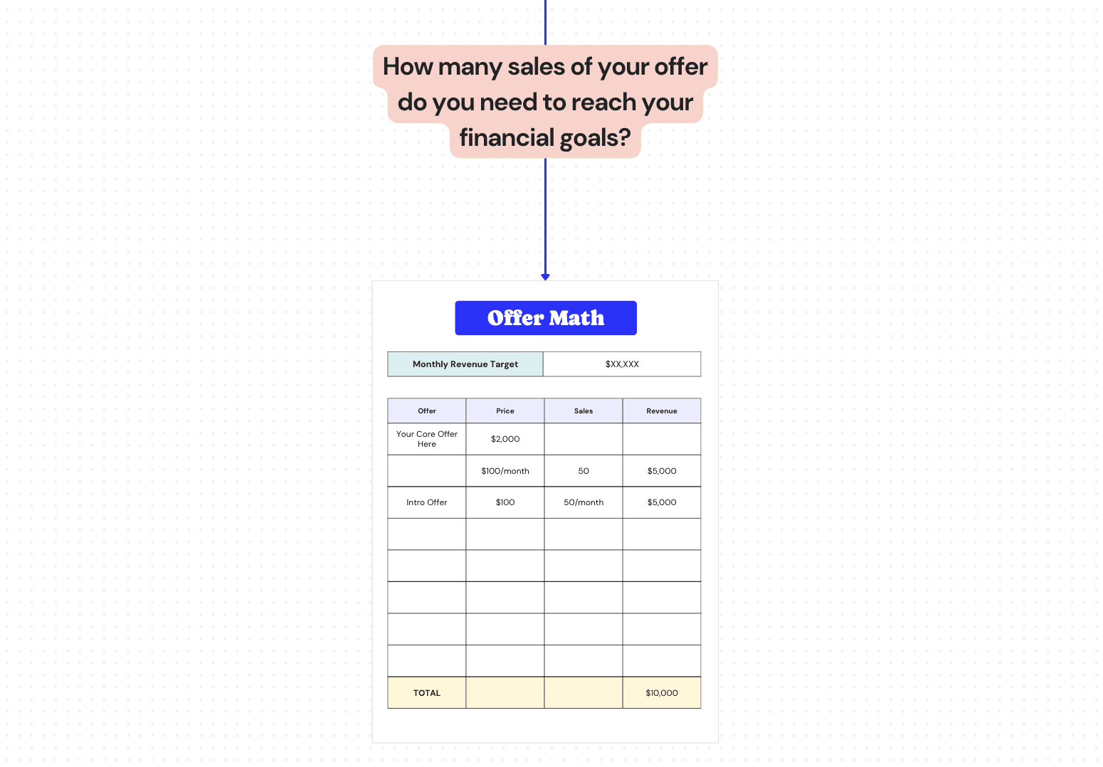 Break down your goals into offer sales