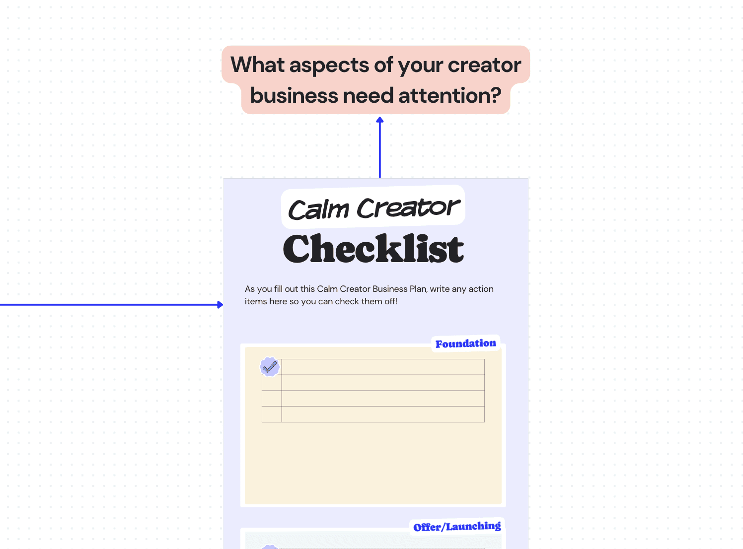 Compile a list of action items to streamline your Calm Creator Business