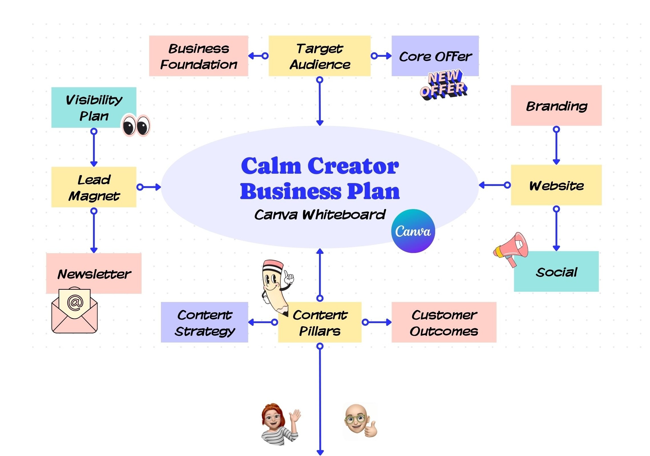 Want to see a walkthrough of the Calm Creator Business PLan whiteboard in Canva? Watch this video!