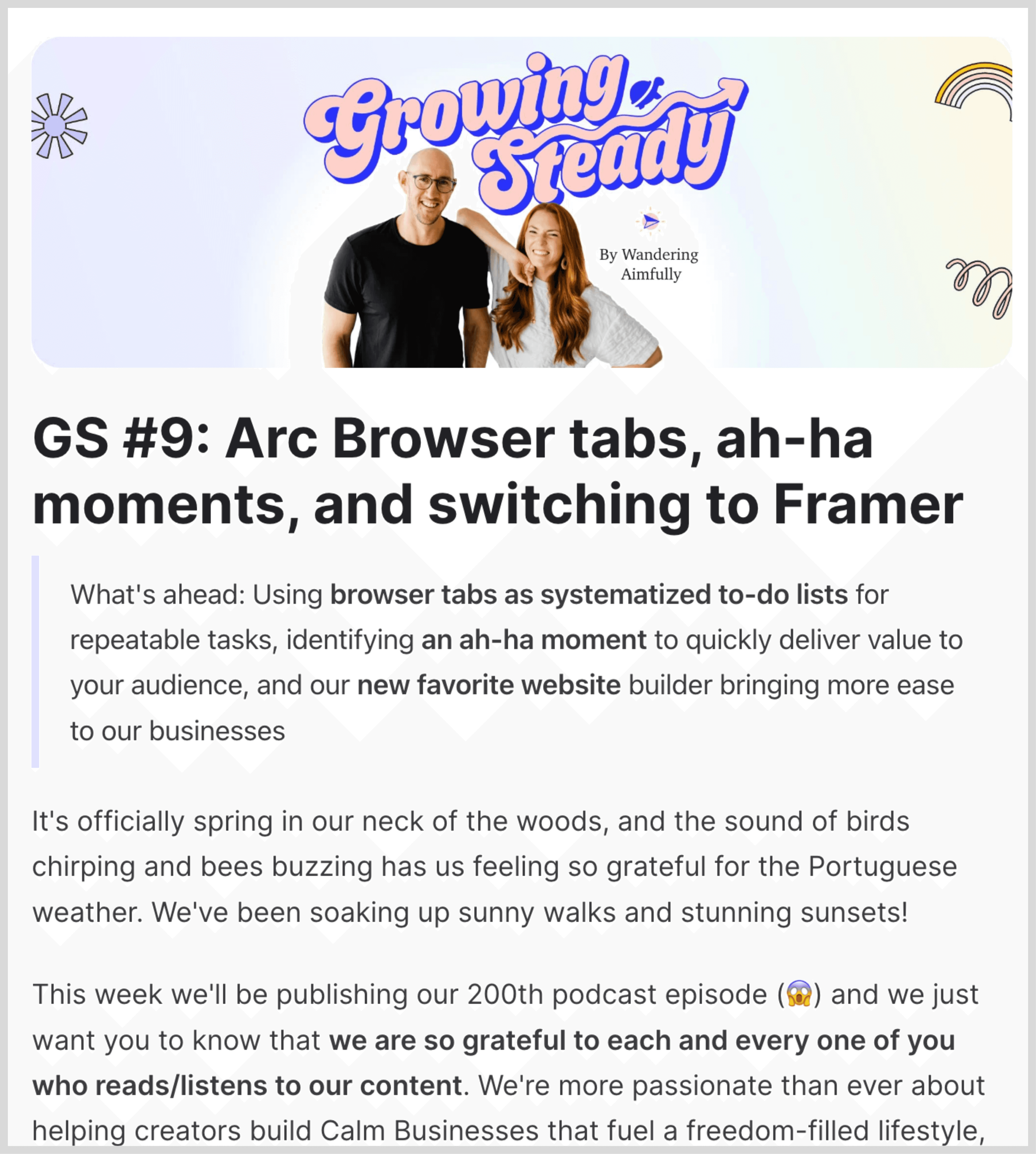 creators receiving our weekly newsletter, Growing Steady, with tips on how to grow a Calm Creator Business