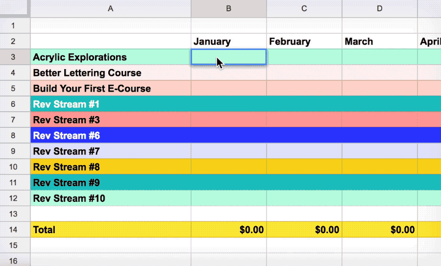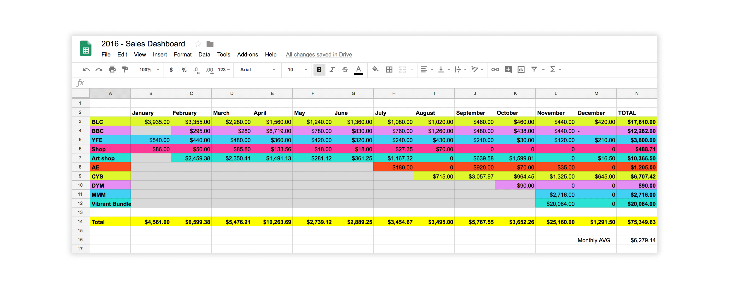 Repeat this for every month. This should allow you to see on the main Sales Dashboard tab how much revenue each of your products brought in each month of the year thus far.
