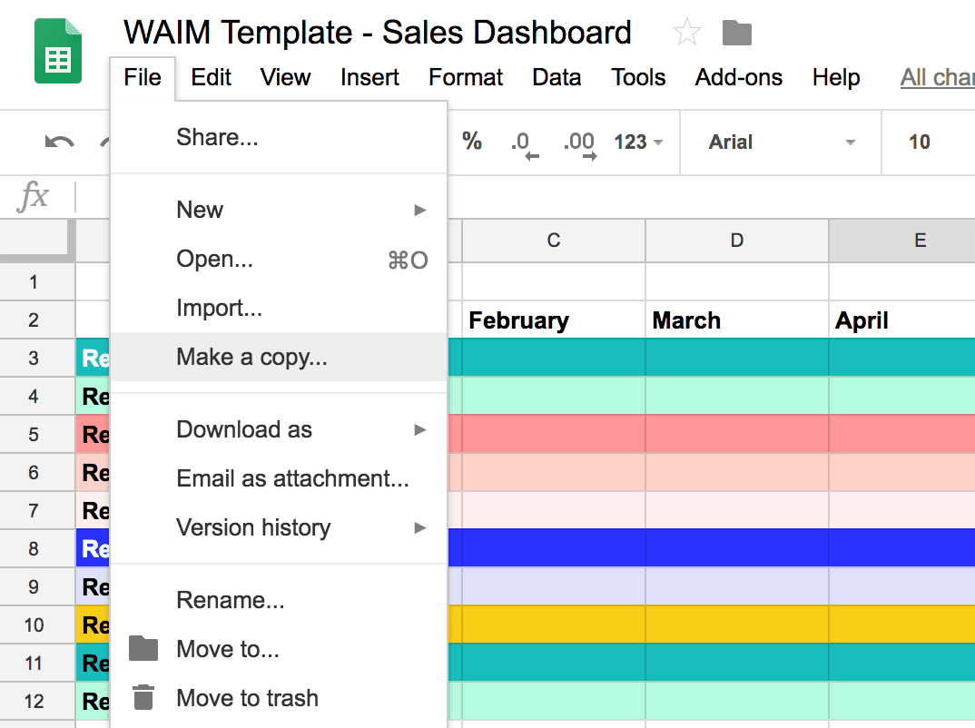 Step 1: Click on the link to the template and hit File > Make a copy… (this will allow you to edit the template.)