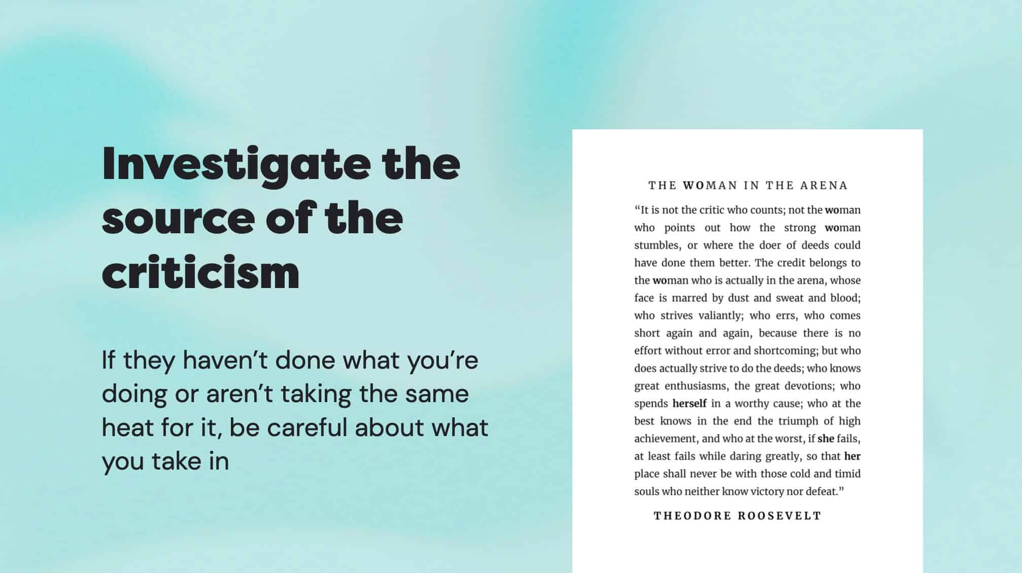 Question whether the person offering judgment or feedback has walked in your shoes. Or, more importantly, if they're even someone who you should be taking business feedback from.