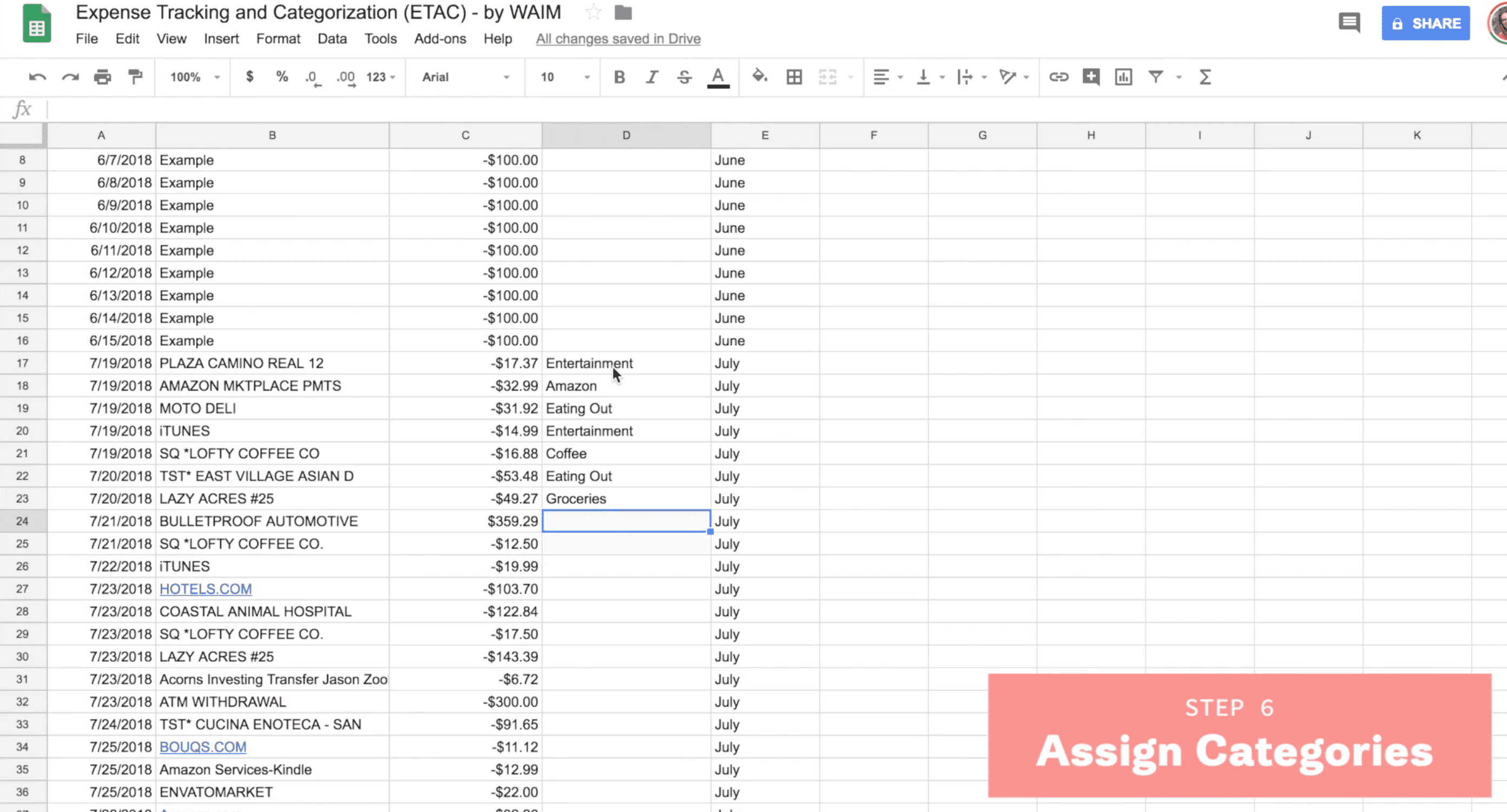 Step 6: Assign transaction categories