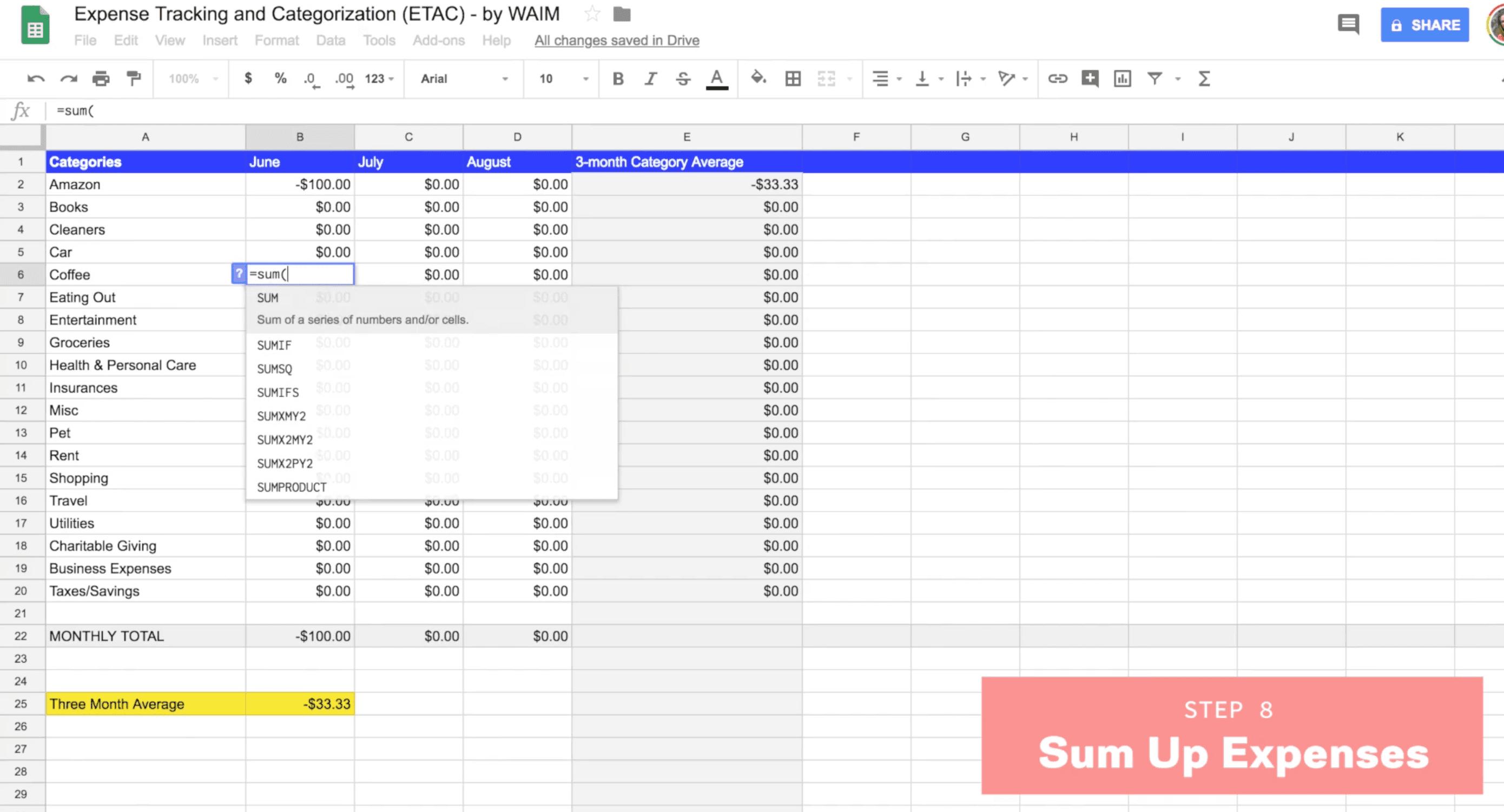 Step 7: Add up your monthly totals (automatically!)